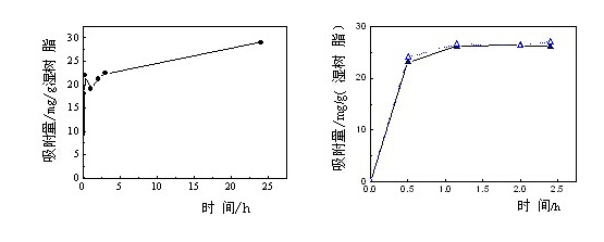 CT-8反相色譜填料樹脂,用于分離胰島素。對蛋白質有良好的吸附、洗脫性能。對牛血清白蛋白(左,1mg/ml,0.1%三氟乙酸水溶液)和胰島素P1(右,35%乙醇的溶液)的靜態吸附動力學曲線(右圖 ?為Source 30樹脂):